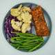 1. Fyld 2/3 af tallerkenen med grøntsager